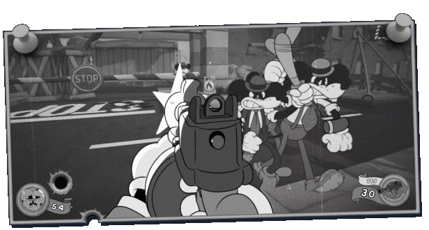从突突扫射的汤普森冲锋枪到爆炸性的火力,佩珀武器库中的每一样法宝都意在制造黑白卡通片般的混乱场面,在深入城市黑暗面的途中,与各路鼠头鼠脑、或奸或邪的爪牙和头目展开激战,用一系列经典而又别具一格的武器把对方送上西天。充满趣味的武器设计与独特的生命值显示,外加卡通角色般的敌人,给老派“硬核”的第一人称射击玩法另添一丝欢快诙谐。
